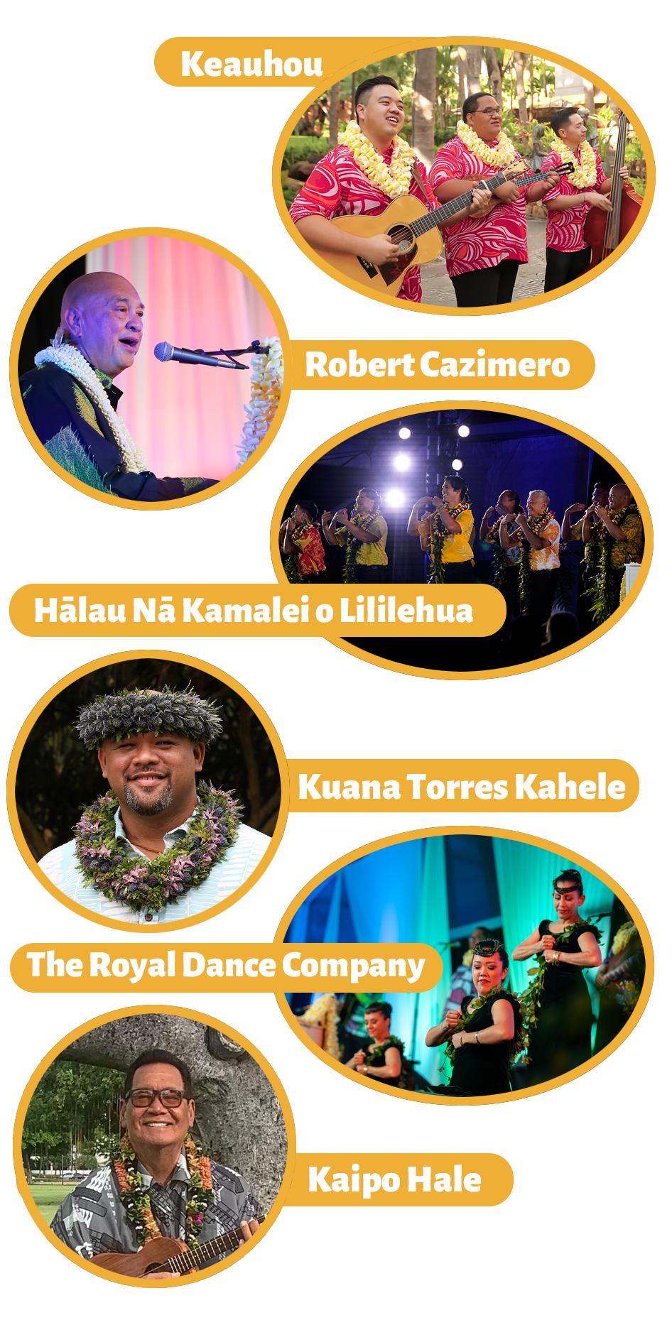 2000年代初頭の最後の May Day で Brothers Cazimero はハワイアンバンドグループ【 Keauhou 】(Jonah Kahanuola Solatorio, NicholasとZachary Lum兄弟)に『バトンを手渡して良いか、音楽、フラそしてもちろんレイの計り知れない伝説を続けていってくれないか』と相談をしました。
